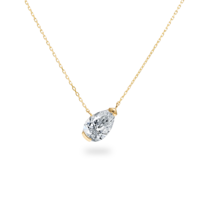 Behold the facet necklace from our INFINITY Collection: a 1ct pear-shaped diamond set in a design that illuminates its beauty from every angle. Elegance redefined. Handcrafted by artisans in Kofu, Japan.