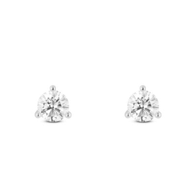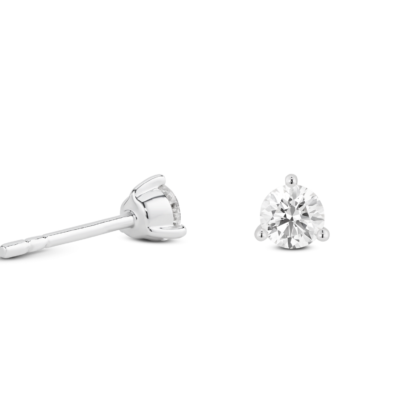 Set in sterling silver, each stud has a three prong setting holding a 0.15 carat stone of SI clarity, Faint color and Very Good cut.