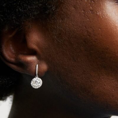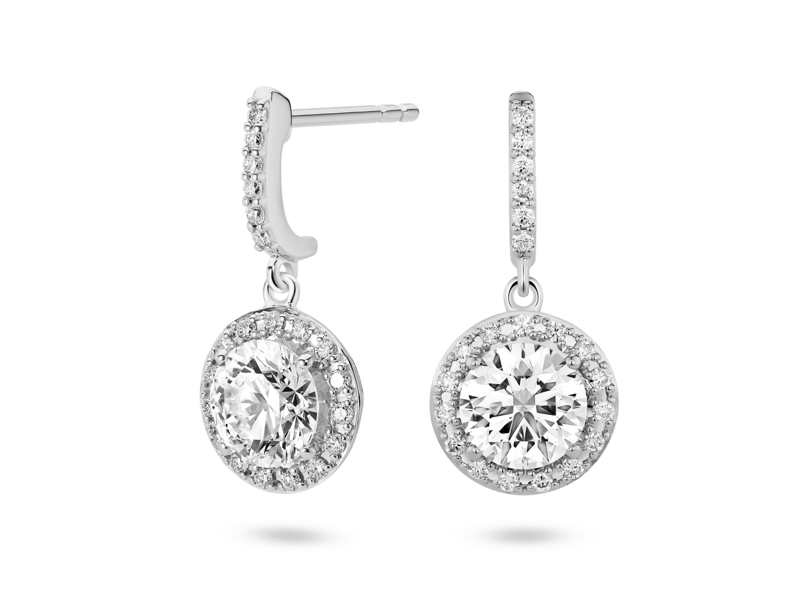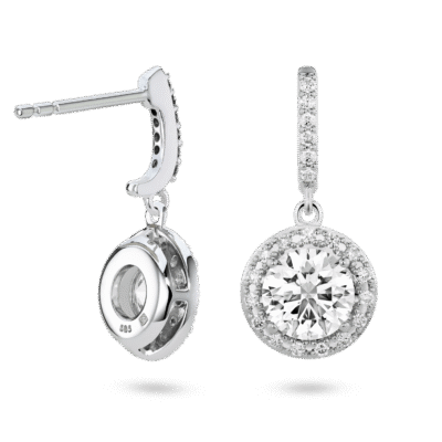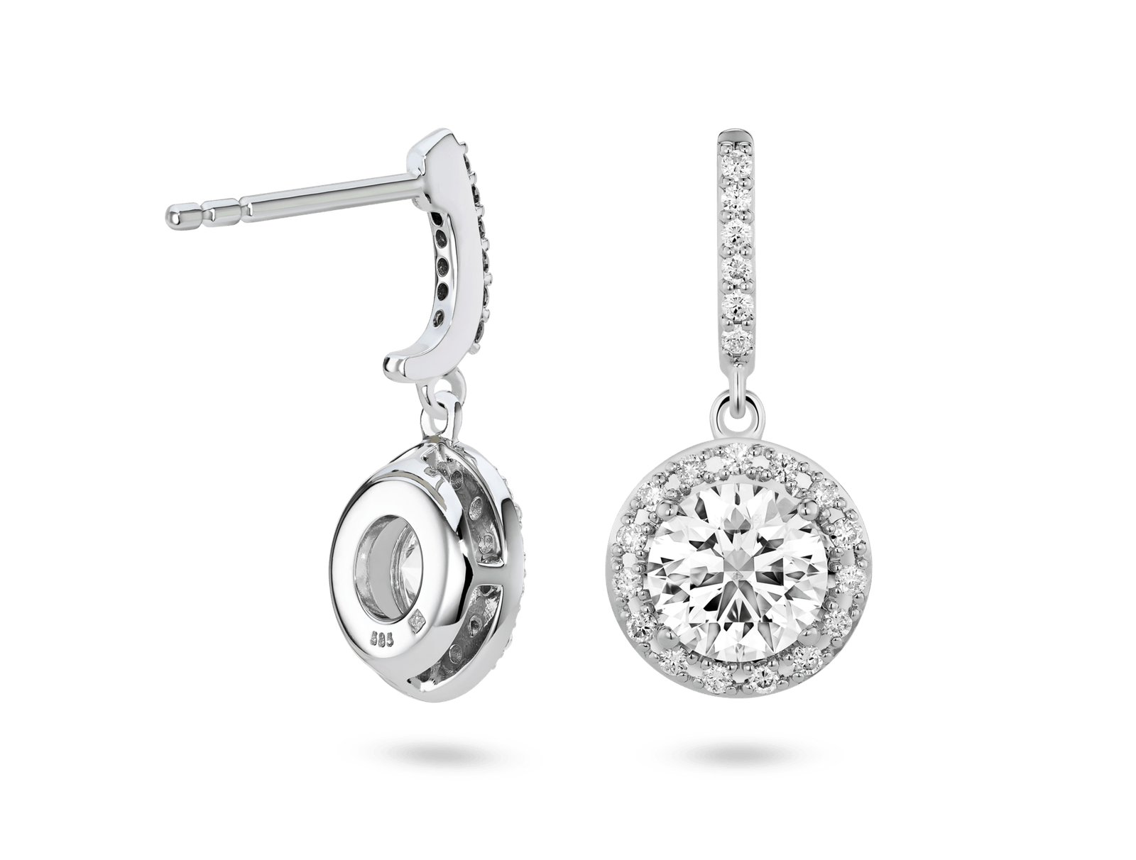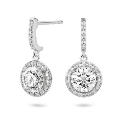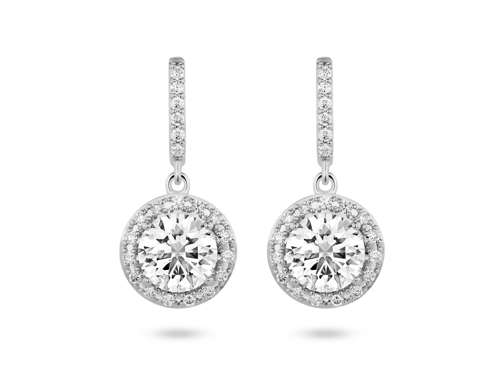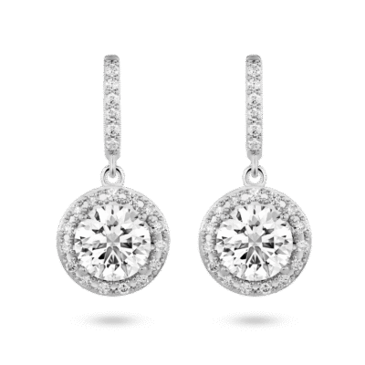 Introducing the most elegant halo drop earrings that will make you feel regal. With each of our white Lightbox stones being of VS+ clarity, Very Good cut and Near Colorless you are guaranteed a magnificent sparkle. These are the perfect earrings to add a wow-worthy moment to your outfit.