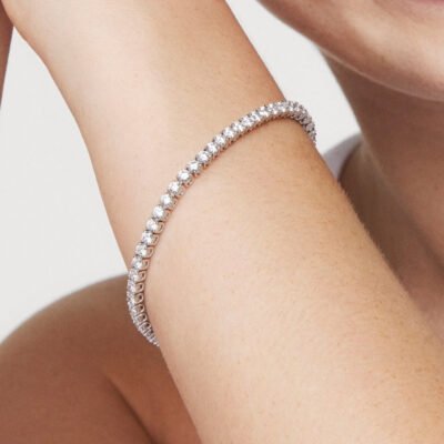 Beautifully handcrafted in 14k gold, our tennis bracelets feature a continuous row of round brilliant cut lab-grown diamonds, graded at VS+ clarity, Very Good cut and G/H color. Each bracelet features a secure box clasp which fits seamlessly with the design.